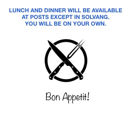 A. Yes. Snacks and thirst-quenching drinks will be provided throughout the ride. Lunch and dinner will be available at each Post or commercial stop for a fee. Donations are always welcomed.